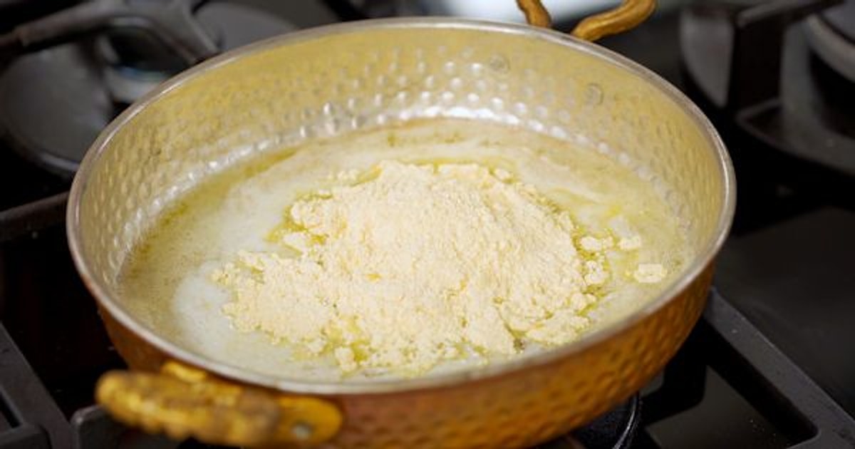 Roast the corn flour in butter just enough so that the flour smell disappears — but be careful not to burn the butter.