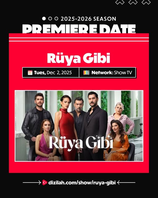 It’s official! The highly anticipated new Turkish drama Rüya Gibi will premiere on Tuesday, December 2, 2025, on Show TV. With a star-studded cast and a gripping storyline blending mystery, ambition, and emotional turmoil, the series is already generating major excitement.