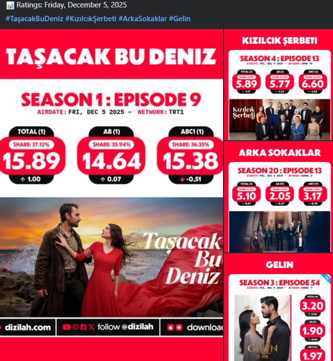 Friday Ratings – December 5, 2025: “Taşacak Bu Deniz” Dominates the Night!